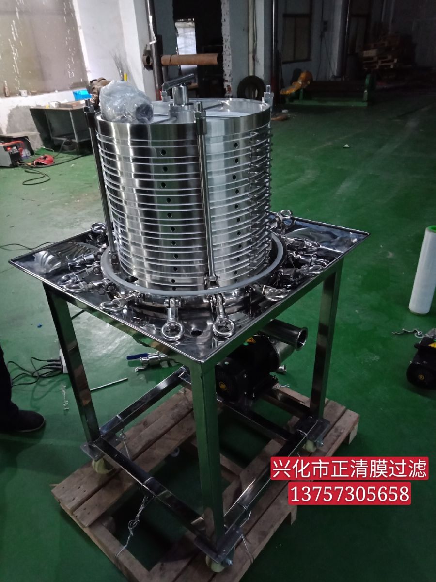 1、層疊式精密過濾器,可承受壓力0.1--0.8Mpa、不漏液體,因本機選用機械壓緊及全封閉法蘭聯(lián)接,杜絕漏的現(xiàn)象,而臥式板框過濾器選用硅膠密封,壓力高容易漏液體,采用旋轉壓緊,硅膠本身有軟性,從而不能保證漏液體現(xiàn)象。