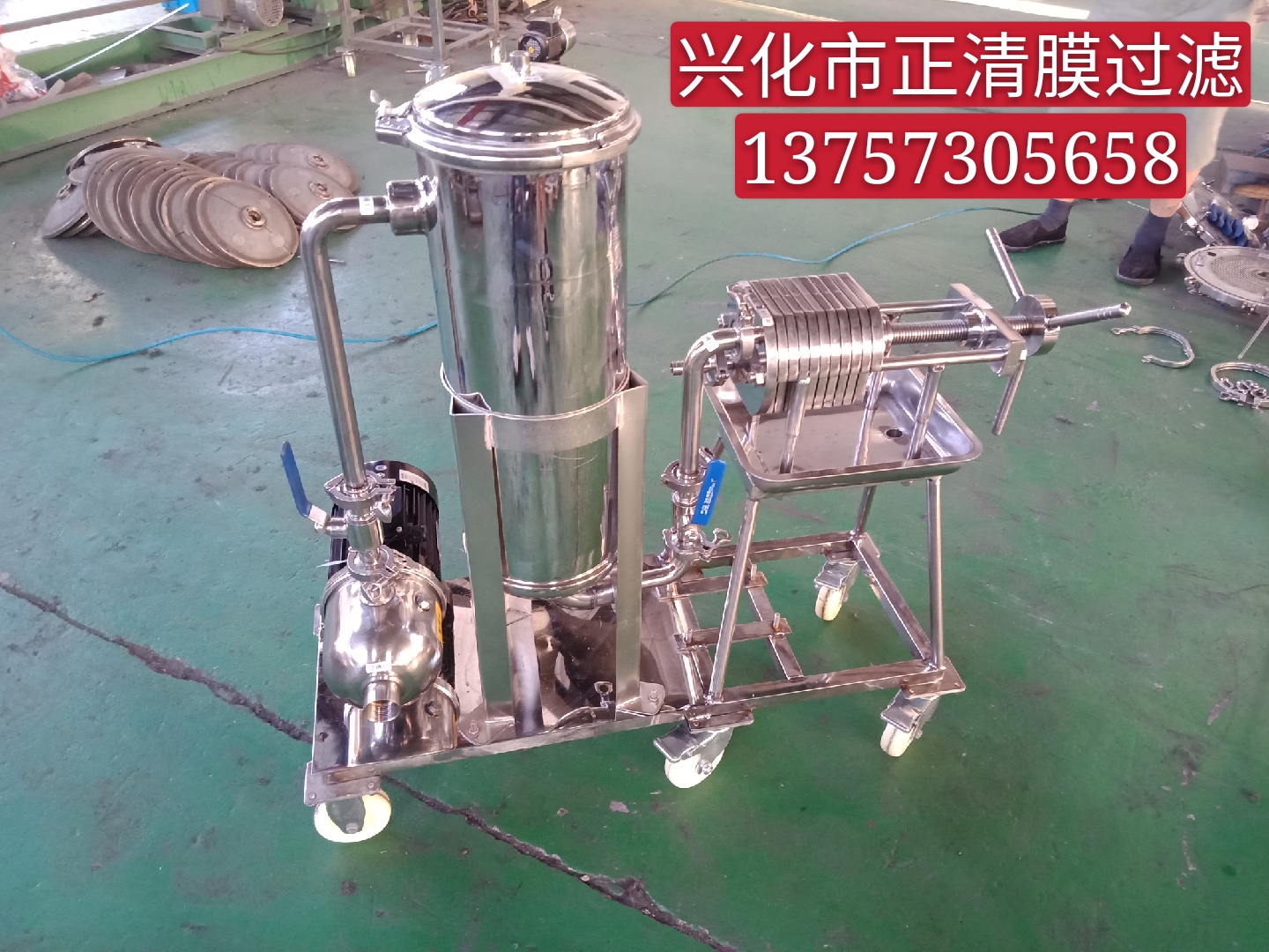 板框過濾器使用須知:1、使用前注射水消毒。2、將濾材用蒸餾水浸濕后貼在網板上,再壓緊頂板。3、啟動前先把泵內加滿液體,再關閉進液泵,然后啟動,逐漸打開液閥,并打開排氣閥排出機內空氣。4、關閉時先關閉進液閥,再關機,防止突然停止液體回流擊環濾材。