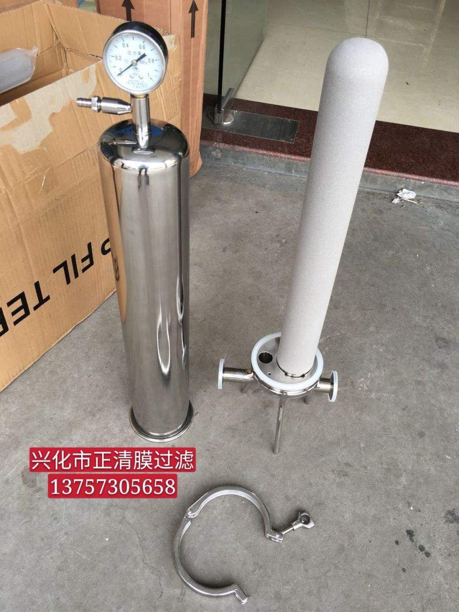 鈦棒過濾器,采用 SUS304或SUS316L 不銹鋼材料作外殼,內部濾芯為鈦管,具有耐高溫、高壓、強酸、強堿、耐腐蝕,濾芯可反復再生使用等特點,是采用粉末冶金方法將鈦金屬粉末未通過高溫燒結的方法加工制成的空心濾管,它廣泛地應用于食品、飲料、醫藥、化工等行業的液固分離,在制藥行業尤其適用于大輸液和針劑生產線中的脫碳過濾。此系列產品具有結構緊湊造型美觀按 GMP 標準生產,管件連接采用國際標準快裝式連接,拆裝清洗方便。