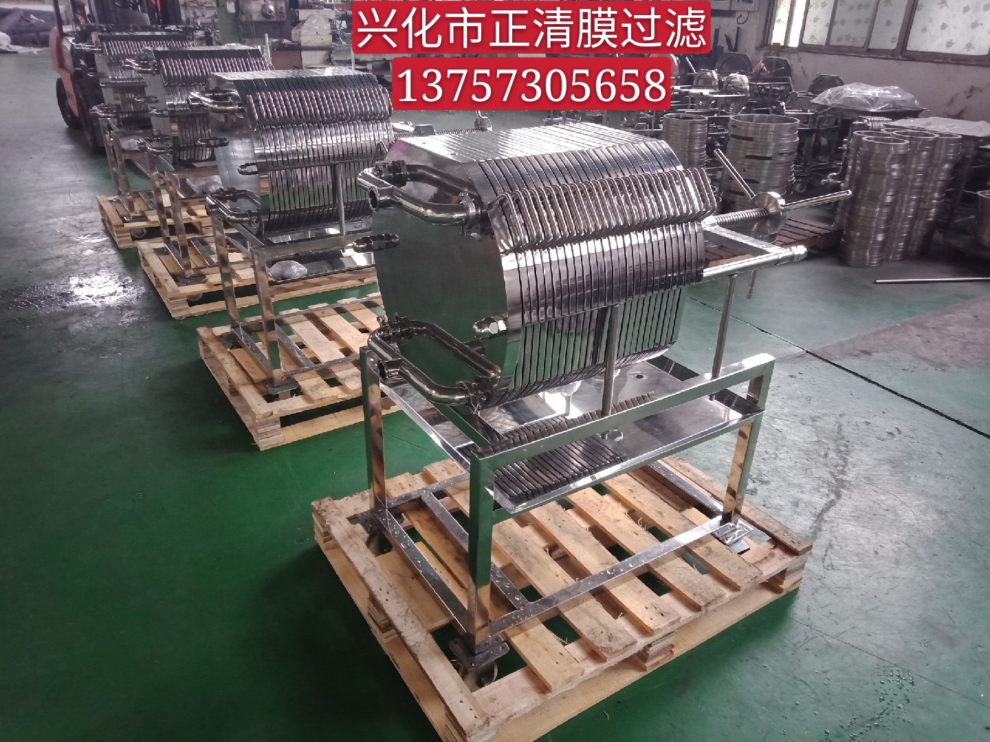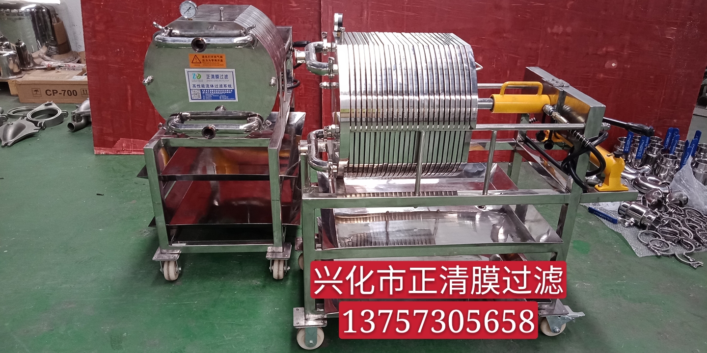 本機為不銹鋼多層板框壓濾機,適用于濃度50%以下粘度較低,含渣量較少的液體作密閉過濾以達到提純,滅菌、澄清等精濾、脫活性碳、除微粒、半精濾的要求,直接選用微孔濾膜,可不經微孔薄膜過濾器過濾可達到無菌過濾之目的)。本機過濾面積大,流量大,適用范圍大,所以在制藥、化工、食品等行業有廣泛用途,應用在制藥廠針劑藥液之過濾,效果甚佳。